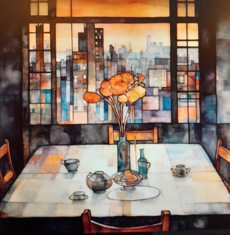 ' Interior with Hyacinths and books '